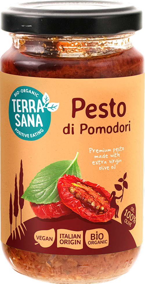 Plant-based pesto, that is special! We make this super tasty tapenade from sun-dried tomatoes, extra virgin olive oil and herbs. You don't miss the cheese at all, super tasty!