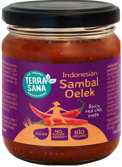 Do you like to add a spicy kick to your dishes? Then try our Sambal Ulek. Made with as few additives as possible. That means no sugar or oil has been added. It's delicious with Asian dishes, on bread, or really any dish that could use a little spice. Of course, it's indispensable in Indonesian cuisine, with your nasi or bami.